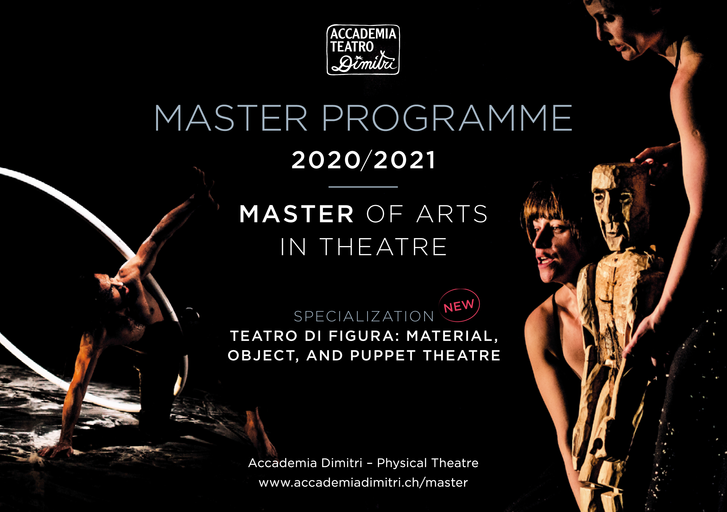 Accademia Teatro Dimitri, pozorišni univerzitet specijalizovan za fizičko pozorište, otvara novi dvogodišnji master studijski program iz oblasti materijal, predmet i pozorište lutaka u predstojećoj akademskoj godini. Stoga Accademia poziva zainteresovane kandidate. Rok za prijavu je 2. oktobar 2020.